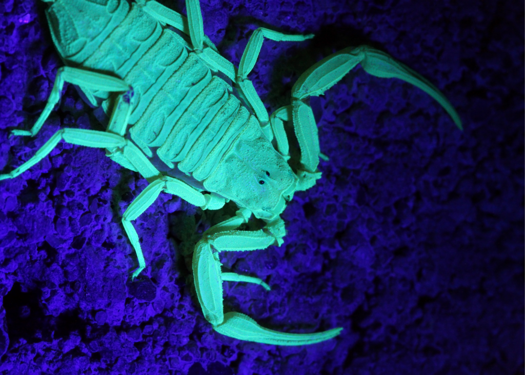 1. Scorpion Hunting: As if scorpions aren’t scary enough, they are in fact nocturnal and almost impossible to spot at night even under a normal flashlight. They’re saving grace is that scorpions do glow under UV light. This is because they produce a fluorescent substance during the hardening process of their cuticles. Why is this important? Well, the Arizona Bark Scorpion who is indigenous in the United States’ Southwest regions is venomous and can, often times be deadly. So, having a UV flashlight in your pocket for walking home at night, camping or any other nighttime activity might just save your life.